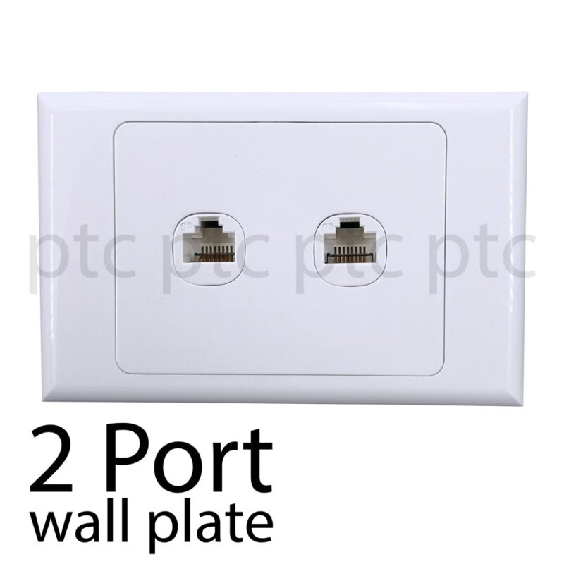 2 Port Network Data Wall Plate Socket Cat6 Cat5 Ethernet WallPlate Kit Punch Down