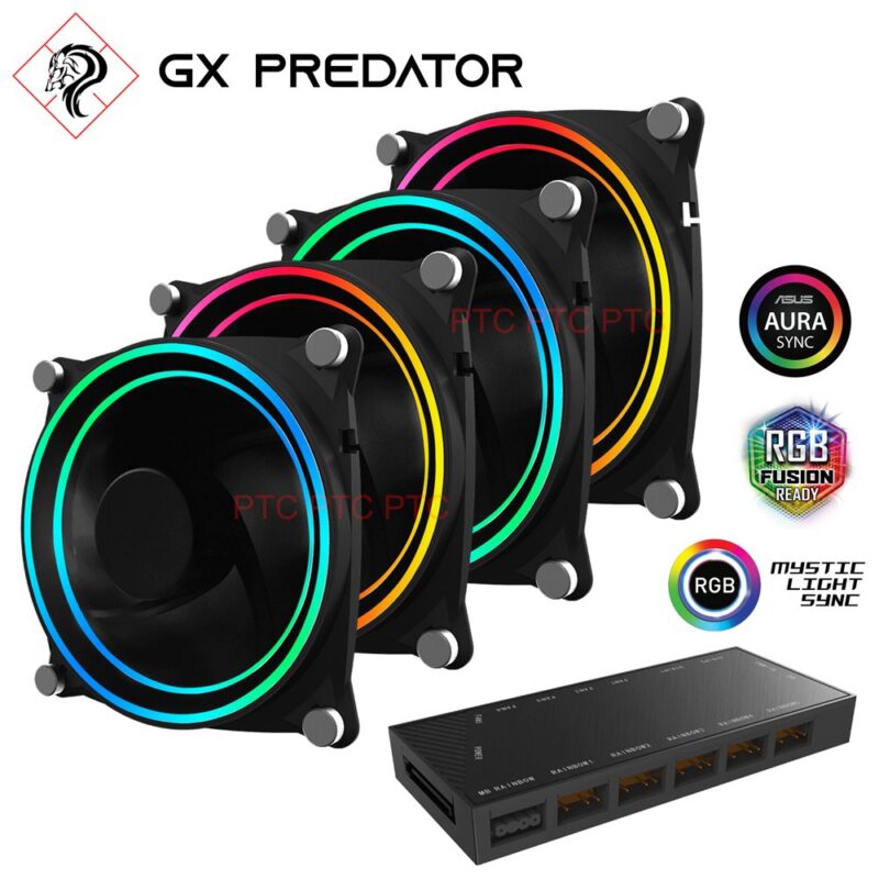 4 Pack Dual Ring RGB Fan GX DBB computer PC cooling CPU cooler w RGB motherboard hub
