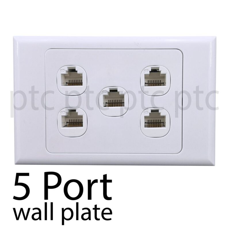 5 Port Network Data Wall Plate Socket Cat6 Cat5 Ethernet WallPlate Kit Punch Down