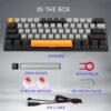 60% Compact 61 Keys True Mechanical Keyboard, Z11 LED Backlit USB Wired Keyboard, Hot swappable Red Switche, Full N-Key Rollover Anti-Ghosting, Grey Black