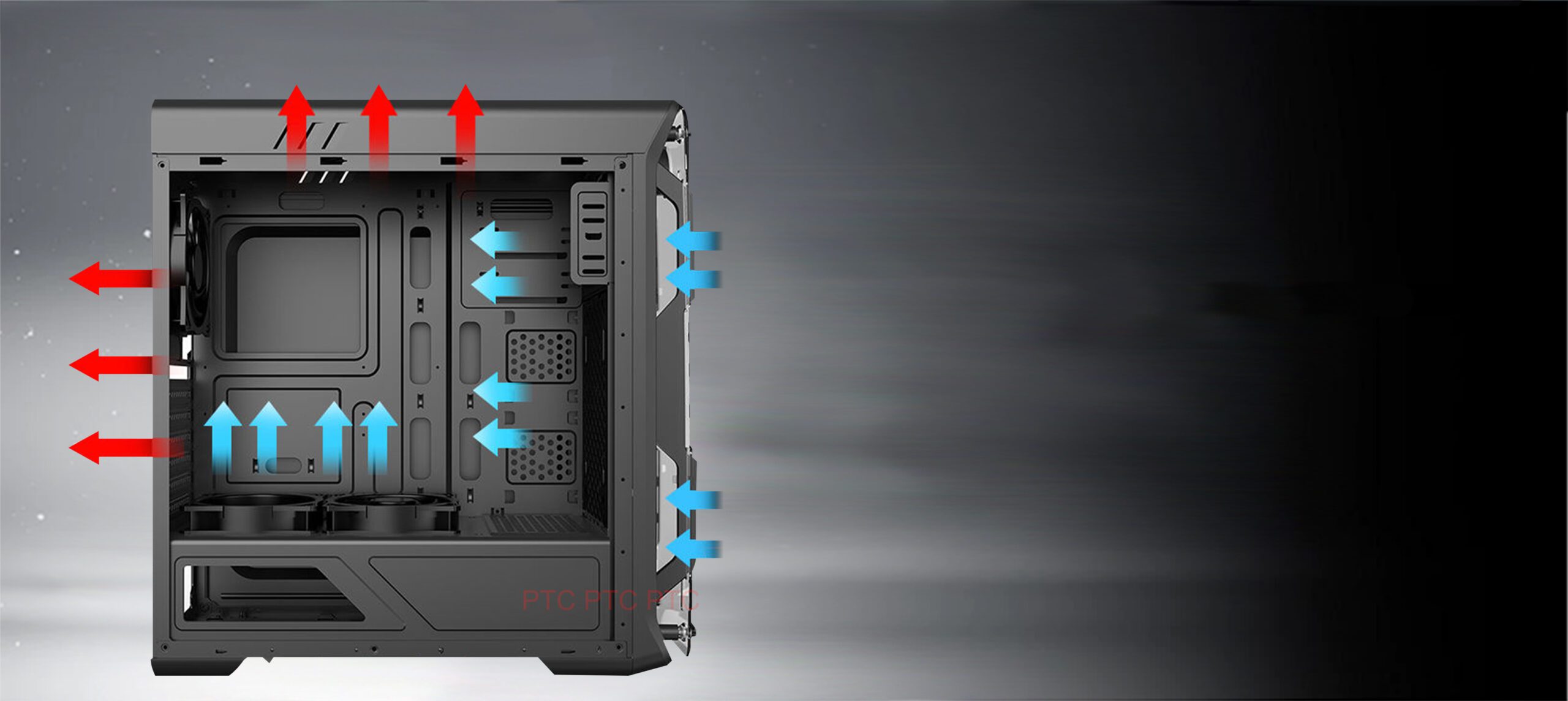 With 8 optimal cooling fan slots, and large air intakes on both sides of the front panel, your hardware will perform at its best. Your games will be more responsive and you will be unbeatable.