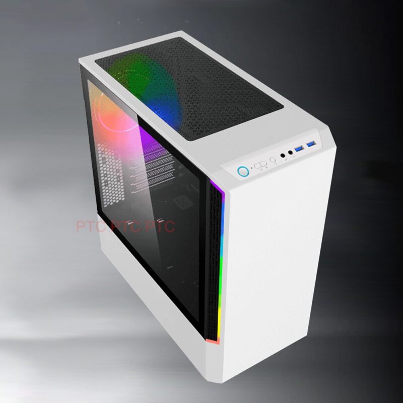 White Coated Gaming PC Case Full ATX Computer Template glass w/ 850w PSU 5x RGB fan